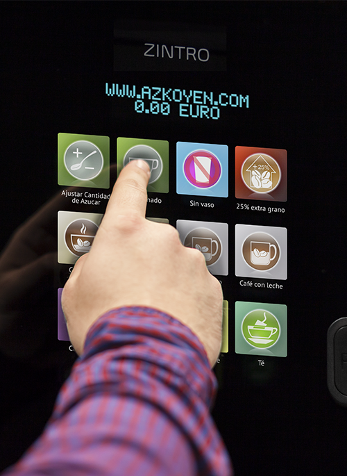 Zintro está diseñada con teclado táctil exclusivo patentado por Azkoyen y permite la personalización del frontal y de sus etiquetas.